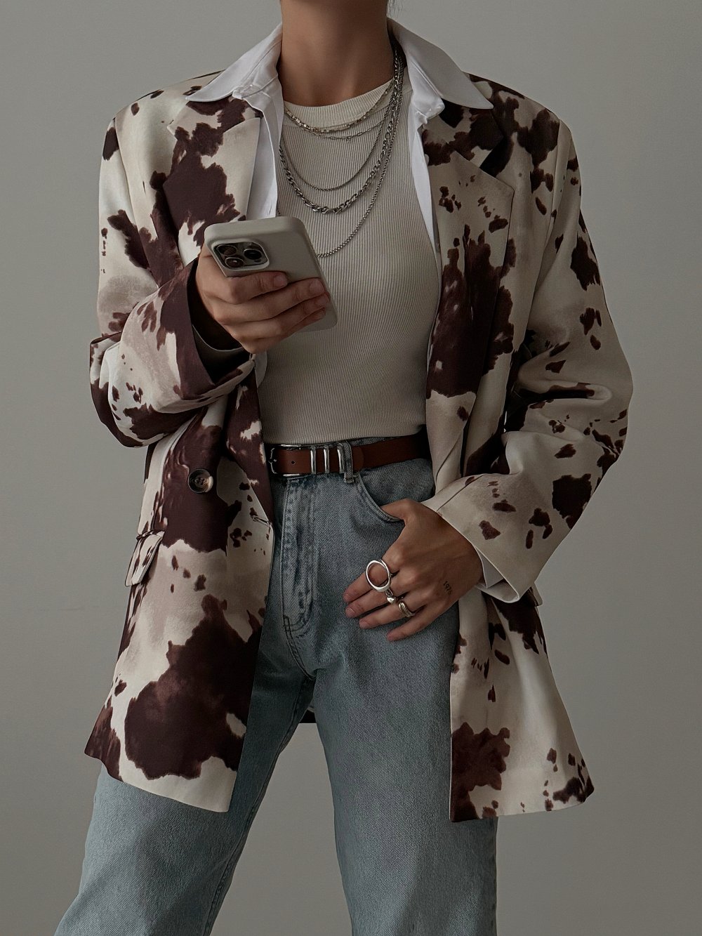 Tenesa Batik Desen Blazer Ceket Krem