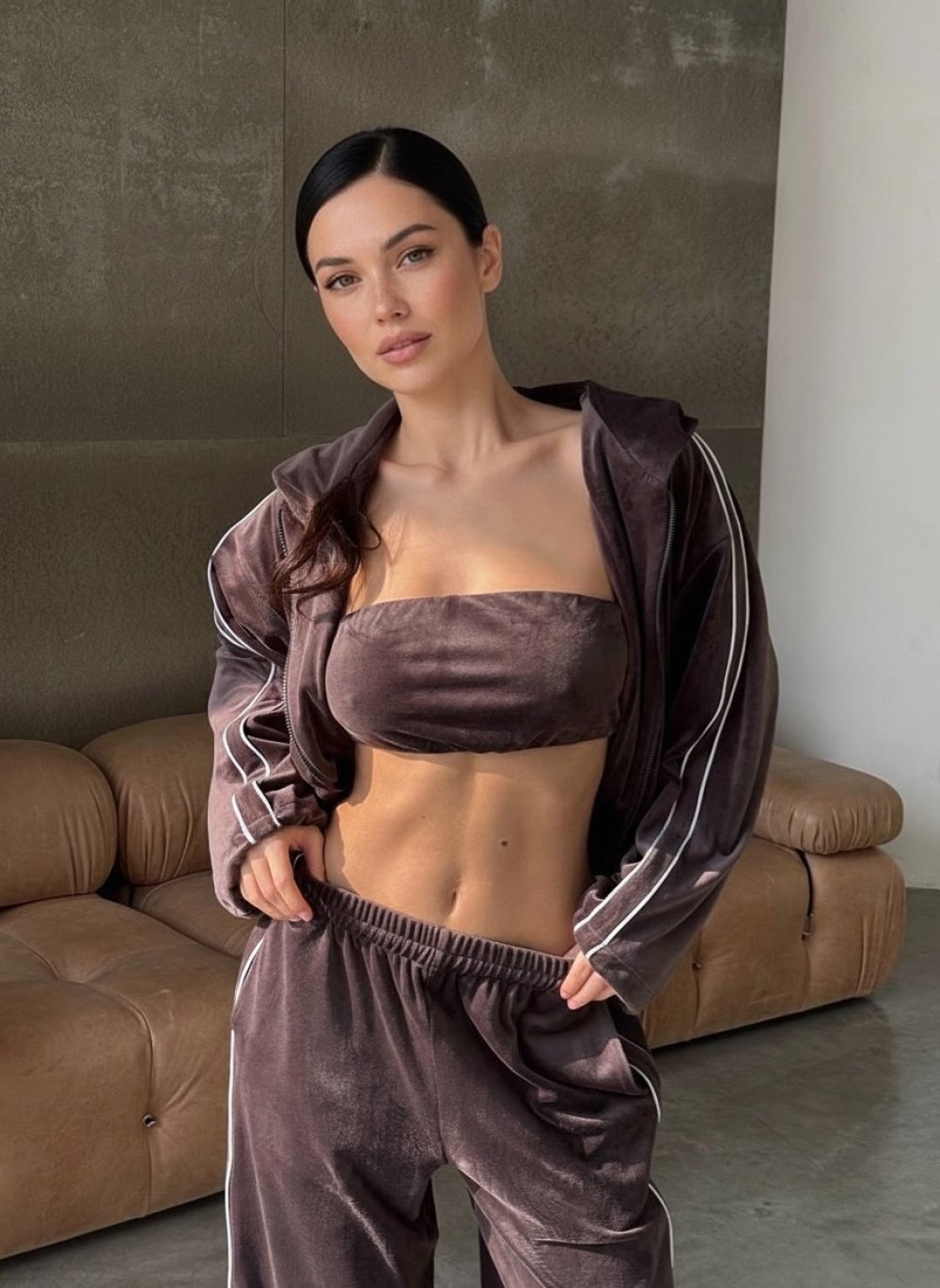 Tina 3lü Kadife Set Kahverengi