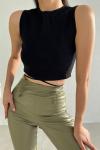 Tina Bel Bağlamalı Örme Triko Crop Siyah