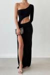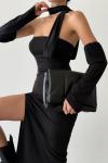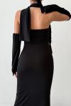 Tino Fular Ve Eldivenli Maxi Boy Straples Elbise Siyah