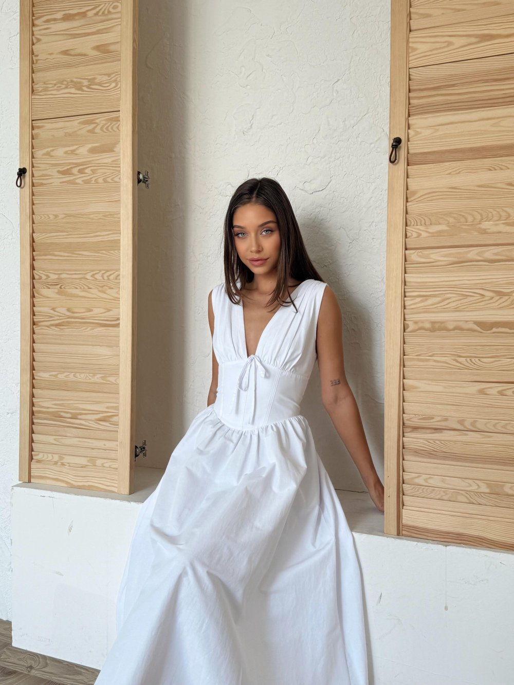 Bu midi boy beyaz elbiseyi, sandaletlerinizle veya şık bir topuklu ayakkabı ile kombinleyerek stilinizi tamamlayabilirsiniz. Kaliteli dikiş yapısı ve dayanıklı poplin dokusuyla uzun süreli kullanım imkanı sunar.