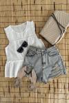Tracey Kuşgözü İthal Bluz Plus Size Beyaz