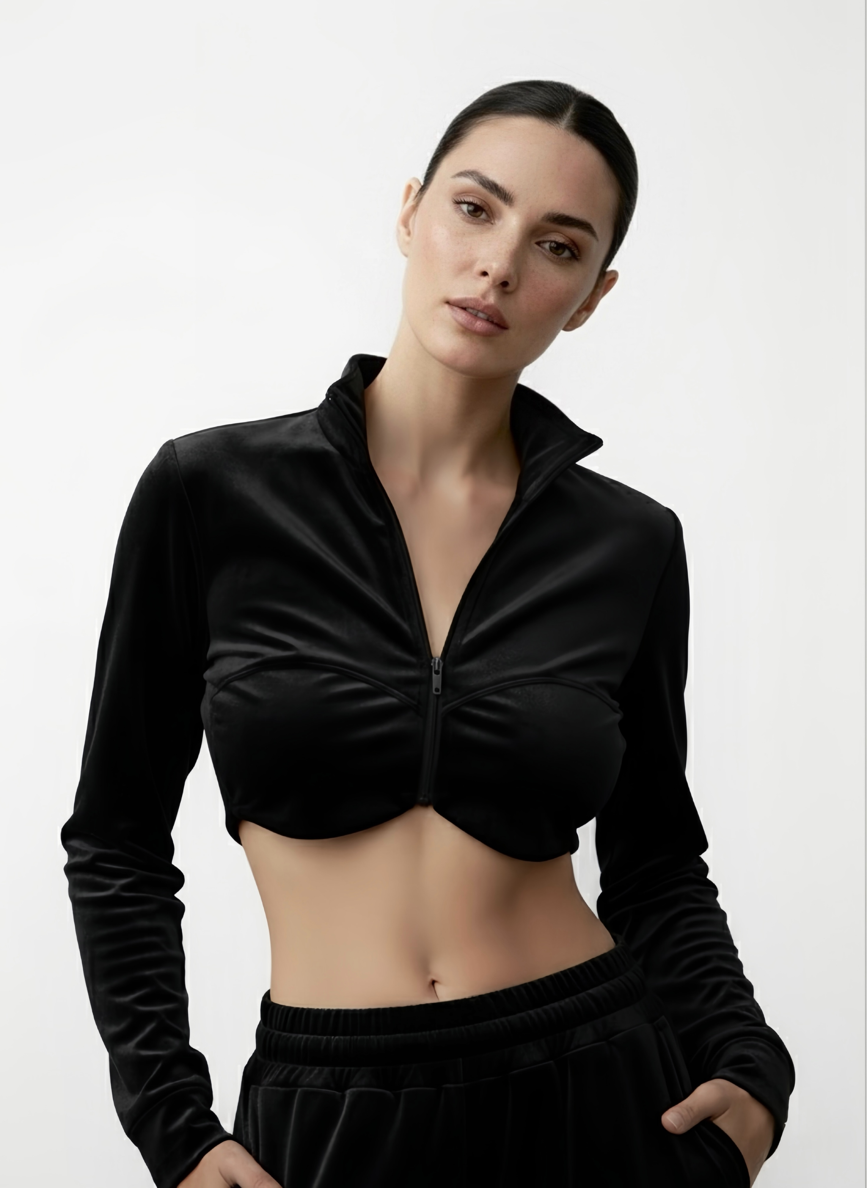 Valeri Gloplu Kadife Takım Siyah