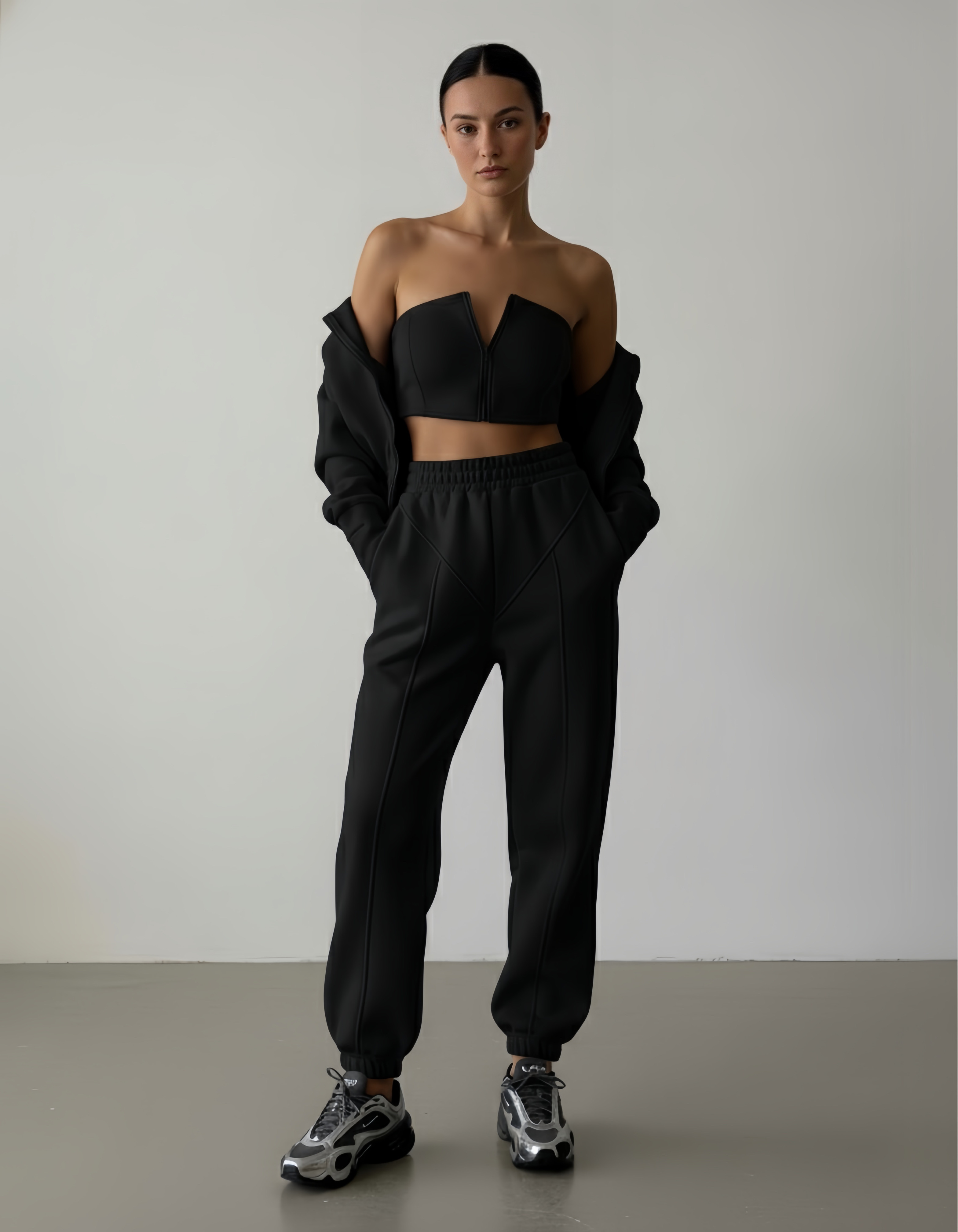 Fona 3 iplik Şardonlu Hoodie Üçlü Takım Siyah