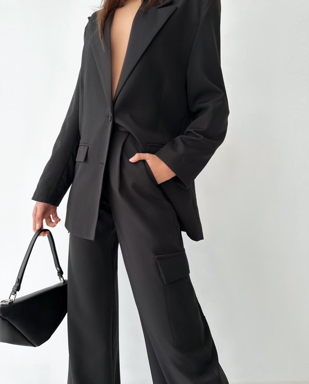 Vera Yüksek Bel Bol Paça Kargo Pantolon Siyah