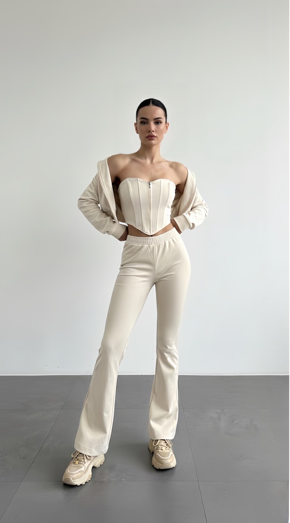 Gardırobunuzda fark yaratacak Vina Korse Detaylı Süet Üçlü Takım, 2199.89 TL fiyatıyla stilini bir adım öne taşımak isteyenler için mutty'de sizi bekliyor. ✨