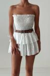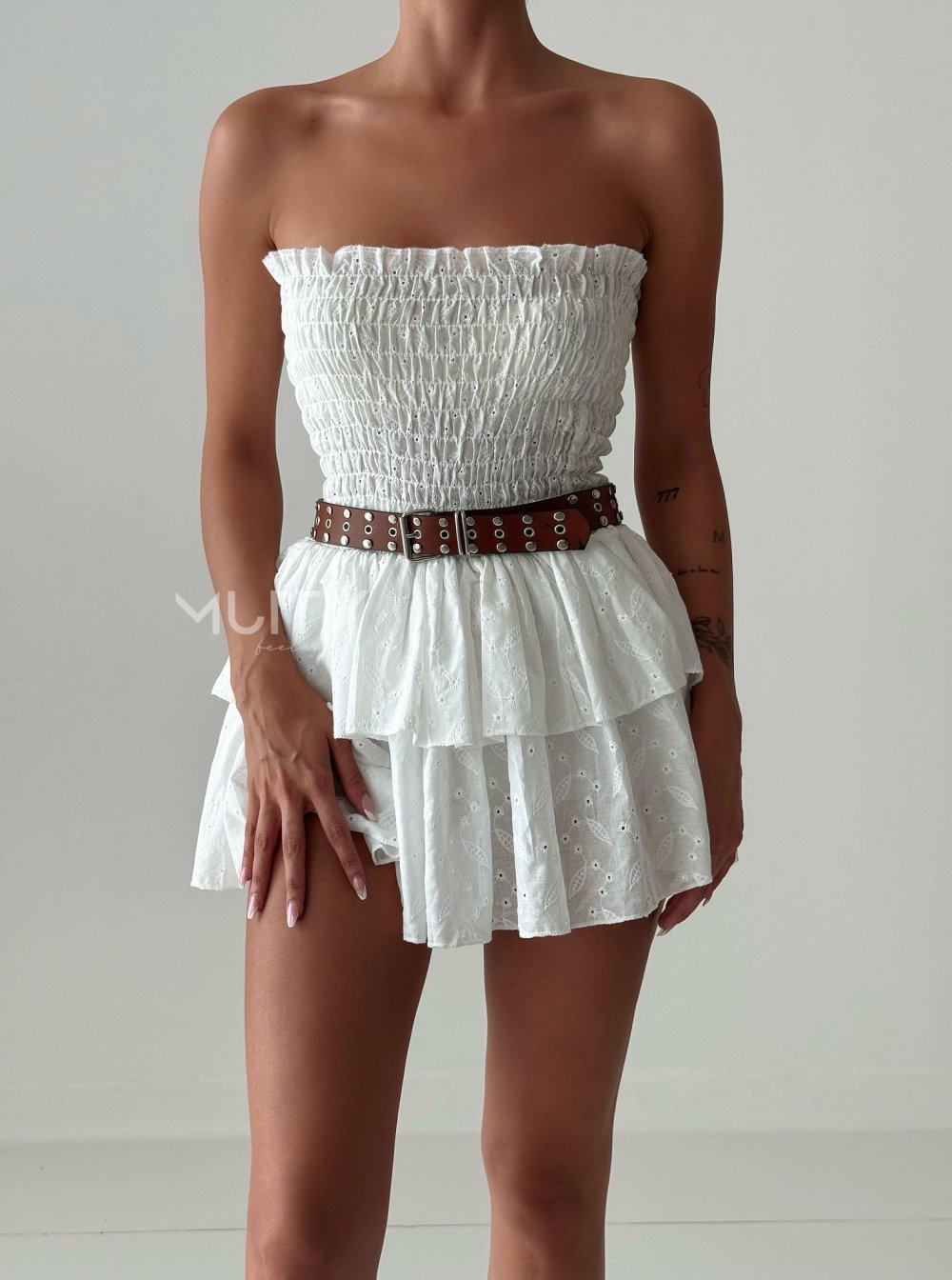 Wely katlı etekli korsajlı brode elbise, zarif detayları ve sofistike tasarımıyla dikkat çekiyor. İnce brode işçiliği, elbisenin romantik ve şık bir görünüm kazanmasını sağlar. Korsajlı üst kısmı, vücut hatlarınızı zarif bir şekilde belirginleştirirken, katlı etek detayı hareketli ve dinamik bir hava katar. Hem özel davetlerde hem de akşam etkinliklerinde şıklığınızı ön plana çıkaracak bu elbise, zarif ve etkileyici bir stil sunar.