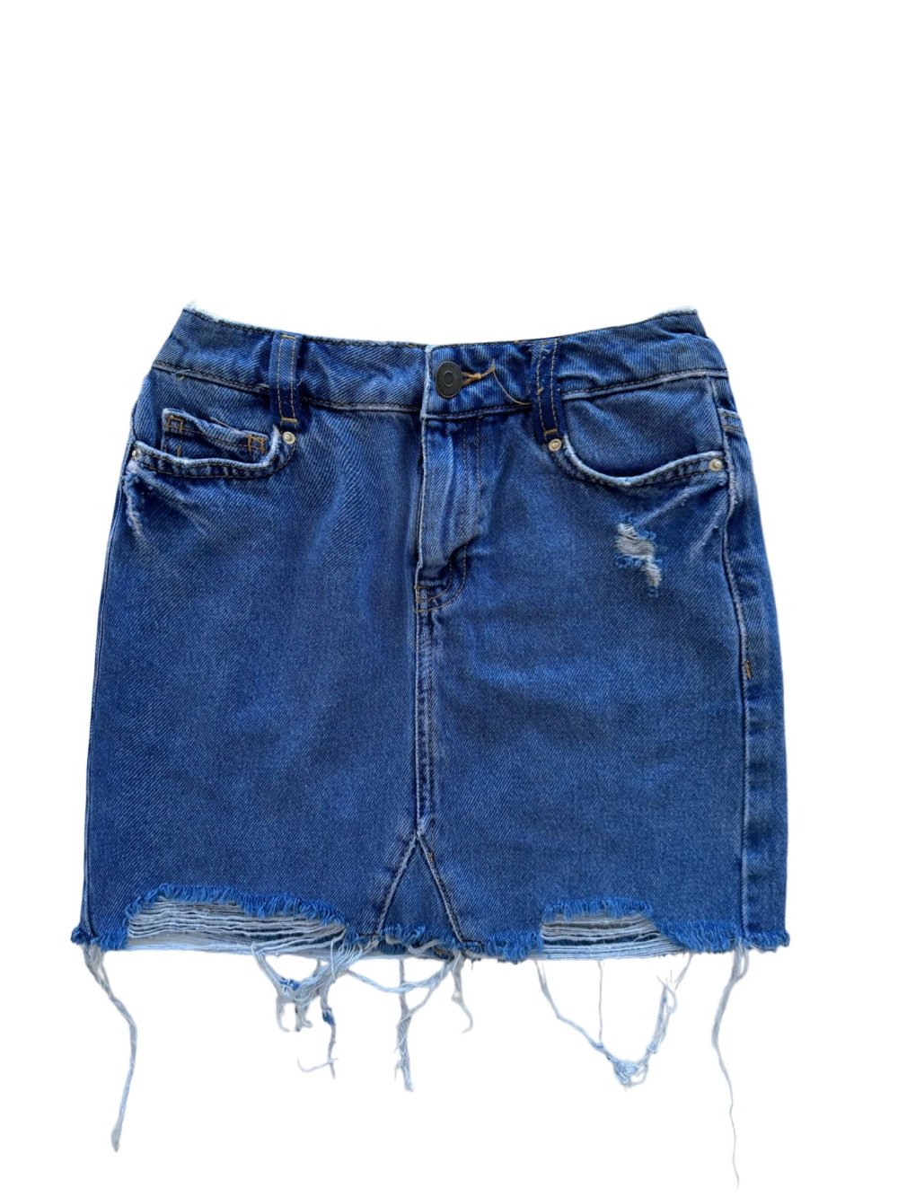 Wendiy Yırtık Detay İthal Denim Etek Mavi
