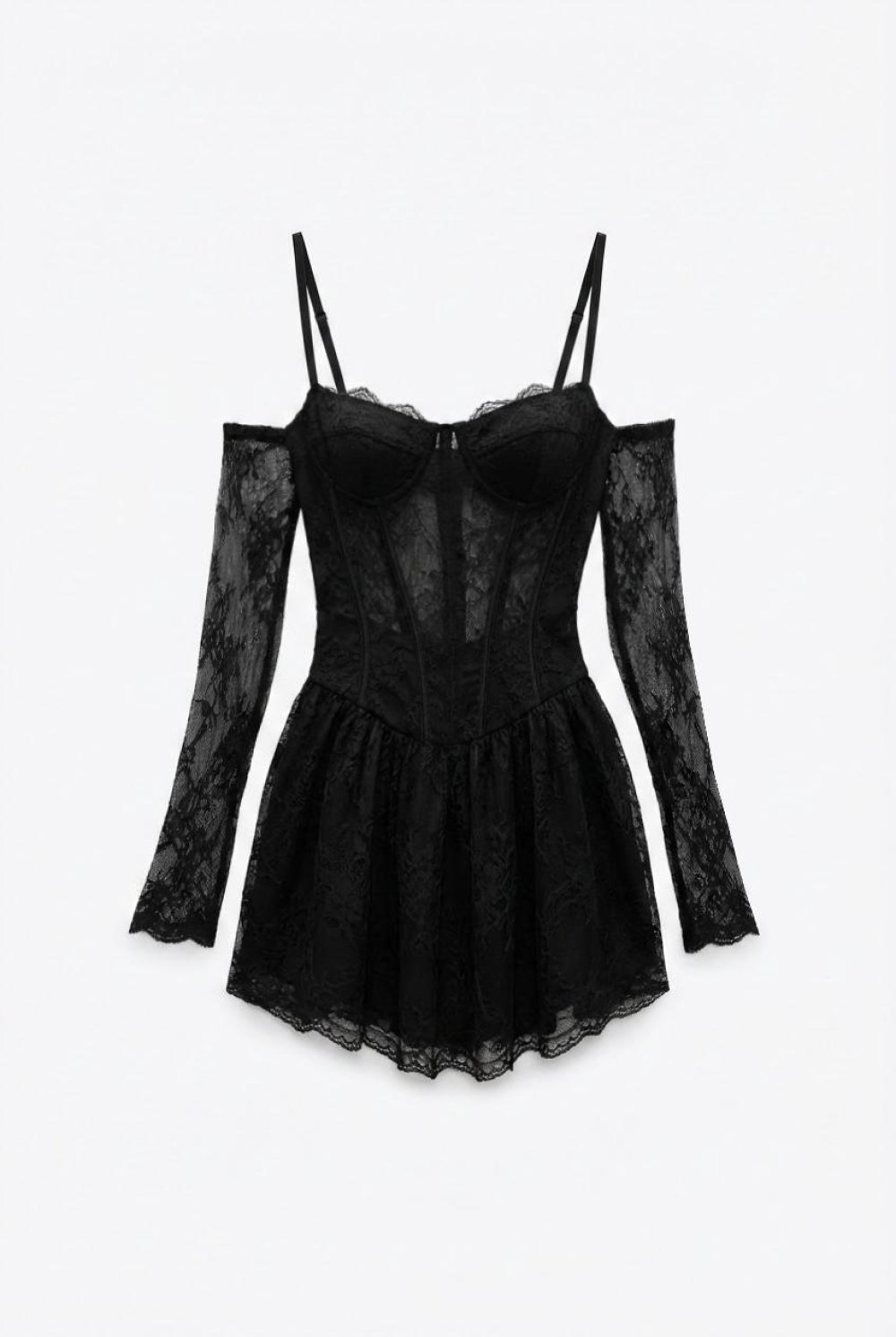 Wigan Korse Detaylı Dantel Elbise Siyah