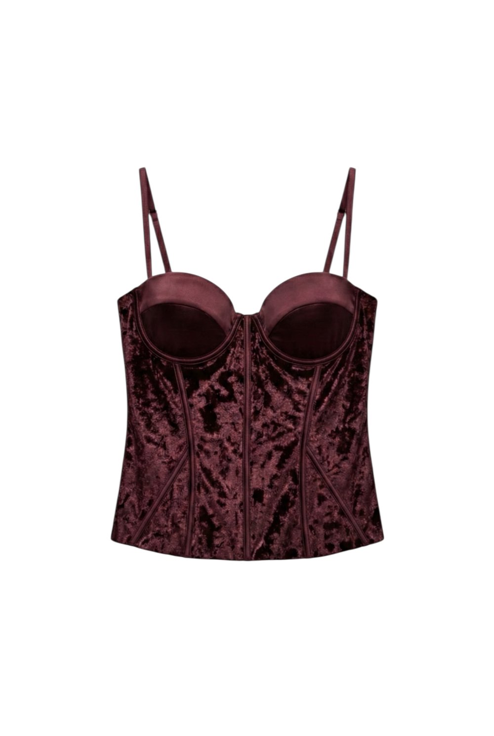 Winsy kadife ve saten karışımlı korse bluz Bordo