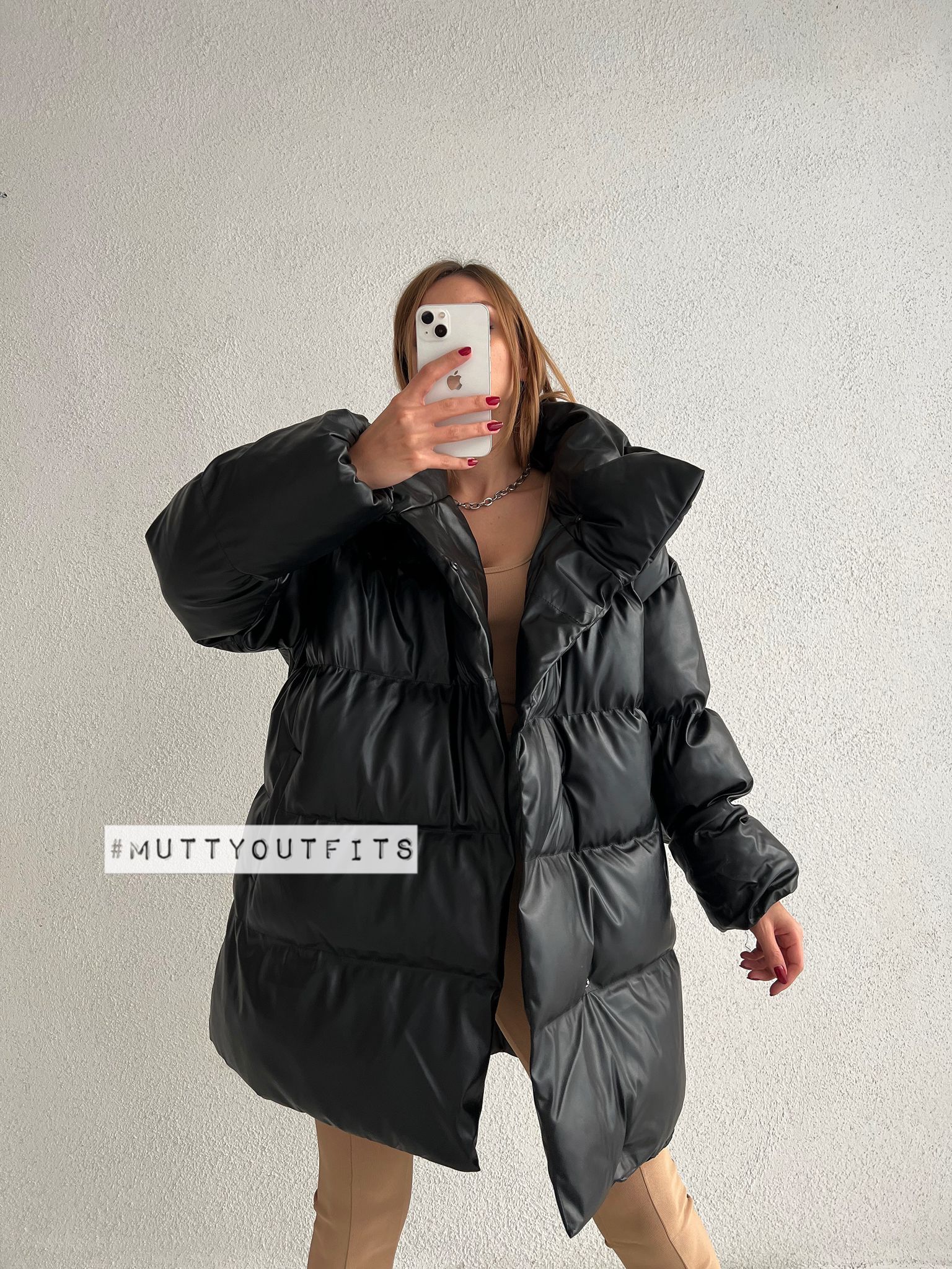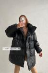 Yana Çıtçıtlı Deri Puffer Oversize Kaban