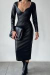 Yolande Gloplu Midi Boy Deri Elbise Siyah