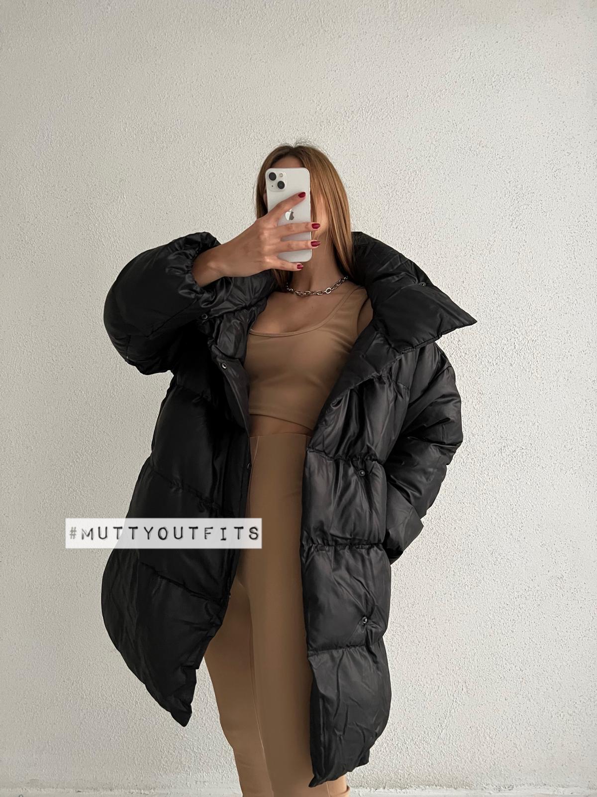 Yuliya Yüksek Yaka Şişme Puffer Kaban Siyah